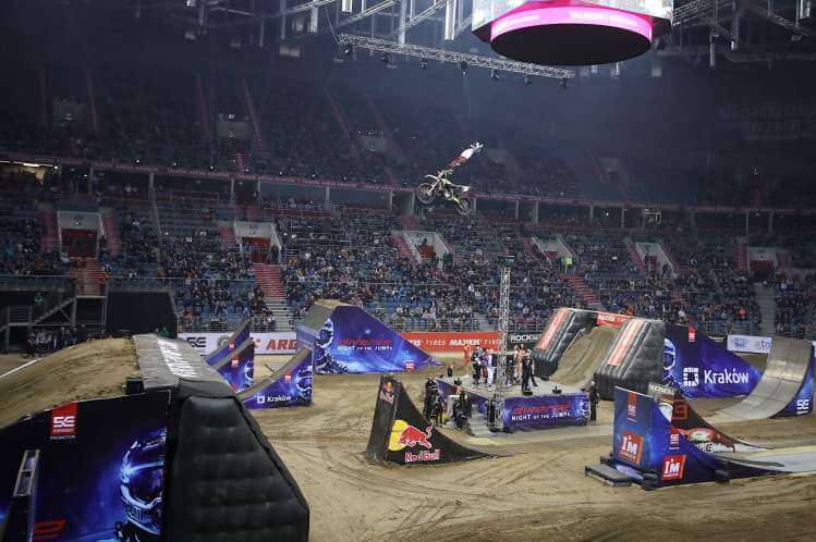Am Samstag stockte den 8.000 Zuschauern in Krakau der Atem, als sich die Freestyle Motocross Sportler der NIGHT of the JUMPs auf ihren Dirtbikes durch die Tauron Arena katapultierten.
