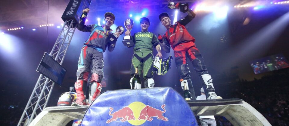 München, 22. April 2017: Am vergangenen Samstag stürmte die NIGHT of the JUMPs zum siebenten Mal die bayerische Landeshauptstadt. 10.000 Zuschauer in der ausverkauften Olympiahalle verfolgten gebannt die Tricks der Sportler bei der extremsten Freestyle Motocross Serie der Welt. Es war der fünfte Contest der Saison, nach vier WM-Wettbewerben stand in München der erste internationale Event auf dem Programm.