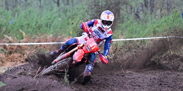 Nach einem spannenden ersten Tag der FIM International Six Days of Enduro (ISDE) in Galicien, Spanien, bei dem Italien und Großbritannien aus dem Rennen um die World Trophy ausschieden, ging es am zweiten Tag für die Teilnehmer unter schwierigen Bedingungen weiter. Ein nasser Start am Morgen sorgte für rutschige und schlammige Bedingungen, die den Fahrern in den frühen Sonderprüfungen alles abverlangten.