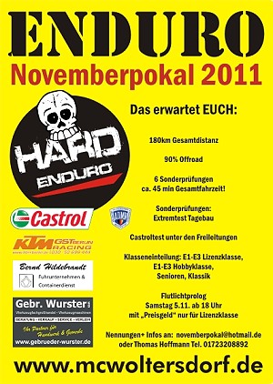 Derzeit kämpfen die Fahrer des MC Woltersdorf beim letzten EM Lauf der Saison in Frankreich um Punkte. In heimischen Gefilden laufen derzeit allerdings auch die letzten Vorbereitungen zum Novemberpokal in Woltersdorf.