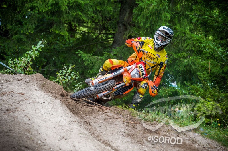 Martin: „Am Freitag bei der Qualifikation, konnte ich die Bestzeit aller Teilnehmer auf der Sonderprüfungsstrecke einfahren. Danach gab es wie gewohnt das Enduro-Cross Rennen. Den ersten Lauf dieses Side-Rennens konnte ich noch normal runter fahren. Beim zweiten Lauf bin ich allerdings als letzter weg gekommen. Irgendwas hat dann meinen Kopf auf „Alarm“ geschalten und ich versuchte mit 110% Motivation nach vorne zu fahren. Leider hat mich das Heck meines Motorrades dann bei einem Sprung über einen Baumstamm überholt und ich bin ordentlich Kopfüber abgestiegen. Leider hab ich auch mein Motorrad in den Rücken und auf mein Knie bekommen. Ich spürte sofort einen richtigen Schmerz, hab aber trotzdem noch daran geglaubt dass ich am Samstag starten können werde. Leider waren die Schmerzen im Knie dann aber doch zu groß und ich musste am Samstagmorgen die Segel streichen.
