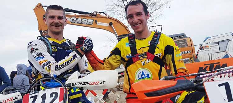Mit einem rasanten Ein-Stunden-Sprint ist die Enduro ÖM am Wochenende in die neue Saison gestartet. Der erste Sieg im ersten Rennen ging an KTM-Pilot Bernhard Schöpf. Der Staatsmeister von 2015 und 2016 gewann den „X-Dream-Sprint“ in Wimpassing vor dem amtierenden Staatsmeister Thomas Hostinsky auf Husqvarna. „Ich denke, dieses Duell wird es in diesem Jahr noch öfter geben“, sagt Sieger Schöpf. Der 27jährige aus Karres in Tirol konnte sich schon beim Start in Le Mans Manier an die Spitze setzen und gab diese Position bis ins Ziel nicht mehr ab: „Das war aber schwieriger als es am Papier aussieht“, sagt Bernhard Schöpf: „Wenn ein Rennen nur eine Stunde dauert, muss keiner der Top-Fahrer mit den Kräften haushalten. Alle geben von Beginn an Vollgas. Für mich war es das erste Rennen der Saison. Da ist diese Intensität schon sehr fordernd. Ich bin sehr zufrieden, dass es so gut geklappt hat.“