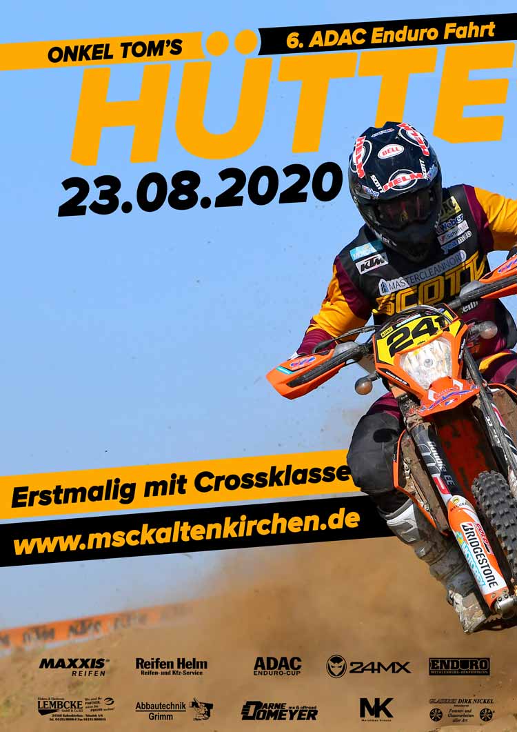 In diesen schwierigen Zeiten richtet der MSC Kaltenkirchen die Enduro-Veranstaltung Onkel-Tom’s Hütte als Corona-Spezialausgabe aus! Den Abstands- und Hygieneregeln gemäß aktueller COVID-19-Beschränkungen folgend, dieses Jahr aber stark verändert als Veranstaltung abseits öffentlicher Strassen. Fahrerlager sowie Start und Ziel befindet sich westlich von Kaltenkirchen auf dem Gelände der Firma „BROCKMANN RECYCLING“ in Nützen (www.brockmann.de). Dieses dürfen jedoch ausschließlich Teilnehmer, registrierte Helfer und Offizielle betreten, zudem besteht dort Maskenpflicht. Gefahren wird dann in den anliegenden riesigen Abbaugebieten verschiedener Kieskuhlenbetreiber. „Um die Nachvollziehbarkeit der Teilnehmer und Begleiter stets dokumentieren zu können, mussten wir die Strecke deutlich überschaubarer aber nicht leichter machen.“, so berichten die Enthusiasten aus Kaltenkirchen. „Zudem werden wir pro Klasse 1-2 Runden mehr fahren als in den vergangenen Jahren. Es wird also genügend echtes Enduro geben!“