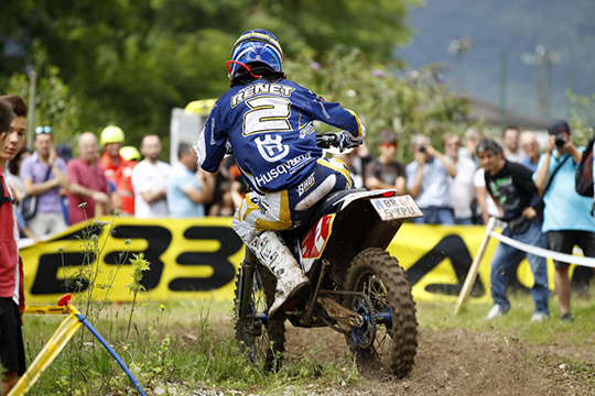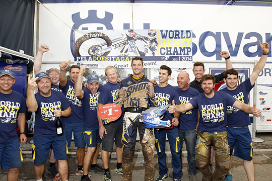 Es gab gleich mehrere Gründe für eine ausgelassene Siegesfeier beim Bel-Ray Husqvarna Factory Racing Team nach dem sechsten und vorletzten Lauf zur FIM Enduro-Weltmeisterschaft im italienischen Lumezzane, bei dem sich Pela Renet den Weltmeisterstitel in der E2-Klasse sichern konnte. Mit einem 34-Punkte-Vorsprung war sich Pela Renet in Italien sicher die in ihn gesetzte Erwartungen zu erfüllen. Mit dem Wissen, nur zwei zweite Plätze belegen zu müssen, um sich gegen seinen stärksten Rivalen Johnny Aubert durchzusetzen, folgte er dem Masterplan. Bereits am ersten Tag hatte sich Pela Renet mit einem zweiten Platz die Grundlage für den Sieg der Weltmeisterschaft am darauffolgenden Fahrtag geschaffen.