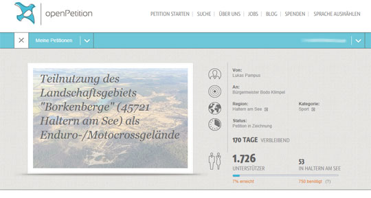 Mit der Nutzung eines Teilgebiets der Borkenberge, als Sportgelände für Enduristen und