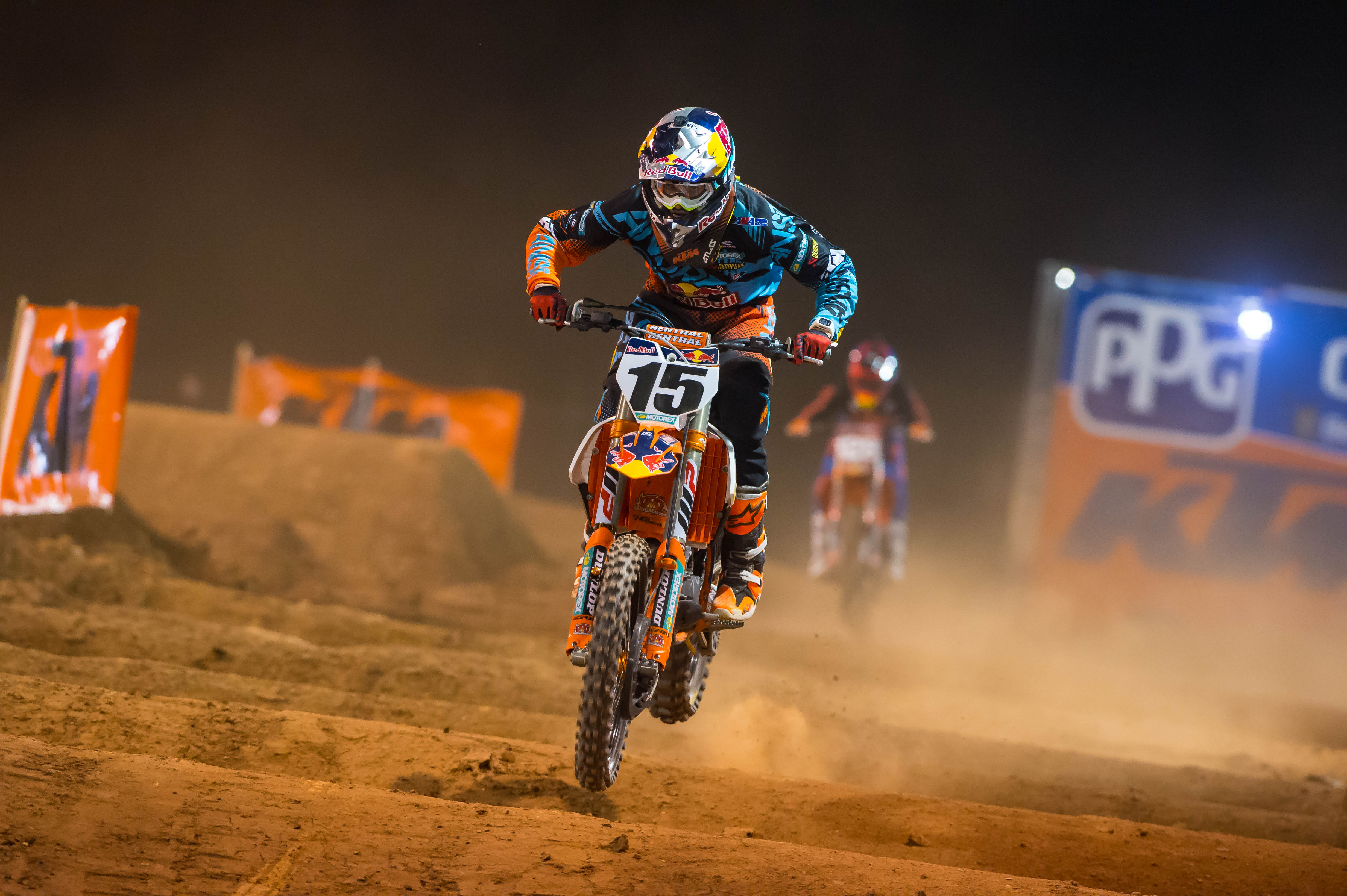 In der Saison 2016 wird sich das Red Bull KTM Factory Racing Team auf die AMA 450 Supercross- und Motocross-Meisterschaft konzentrieren, während das Troy Lee Designs Red Bull KTM Factory Racing Team das Werk offiziell sowohl bei den Indoors als auch bei den Outdoors in der 250er-Klasse repräsentieren wird. Nach der Teamvorstellung sowie Interviews mit den Fahrern und Teamchef Roger De Coster, der einen kurzen Ausblick auf die kommende Saison gab, zeigten die Fahrer einige Demo-Runden auf der von Flutlicht beleuchteten KTM-Supercross-Teststrecke.
