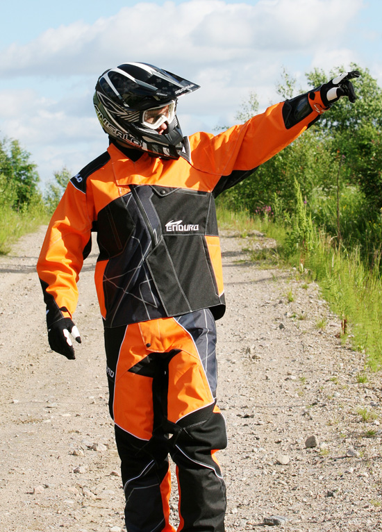 fälligem Orange erhältliche Sinisalo Enduro XTR Textil-Anzug erfüllt alle