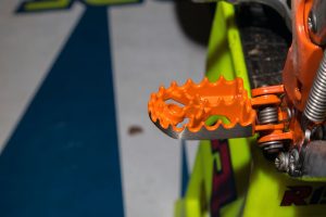 Die FRITZEL-Fußrasten lassen sich einfach montieren und passen gerade in der Farbe orange perfekt