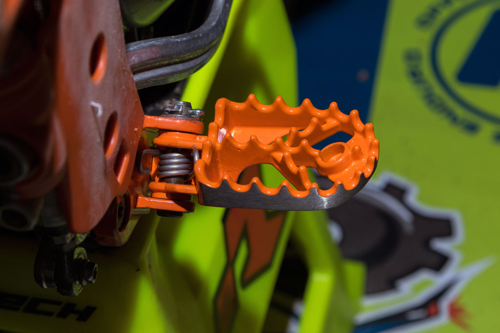 und ihre fein geschliffenen Flanken. Die Fußrasten sind passend für Sherco, Beta, KTM, Husaberg