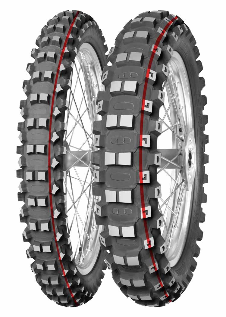 Die TERRA FORCE-MX-Linie wird mit dem roten Streifen gekennzeichnet wie alle Motocross-Reifen für Wettbewerbe.