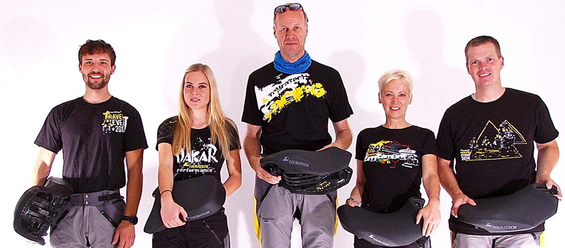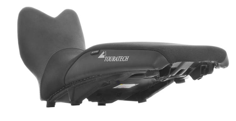 Gemeinsam ist allen Sitzbänken von Touratech ihr sorgfältig gestalteter Innenaufbau mit einem Schaumstoffkern, der exakt an die menschliche Anatomie angepasst ist. Eine zentrale Sitzmulde verteilt die Gewichtskräfte gleichmäßig über das Gesäß und entlastet hierdurch die Sitzbeine. Auch die seitliche Kontur des Schaumstoffkernes sorgt dafür, dass an den Kontaktstellen zum Körper keine Druckspitzen auftreten. Damit der Sitzbankkern seine anatomische Form auch auf langen Etappen und über viele Jahre bewahrt, setzt Touratech auf besonders hochwertige Schäume, die bei einem Partnerunternehmen nach exakten Vorgaben gefertigt werden.
