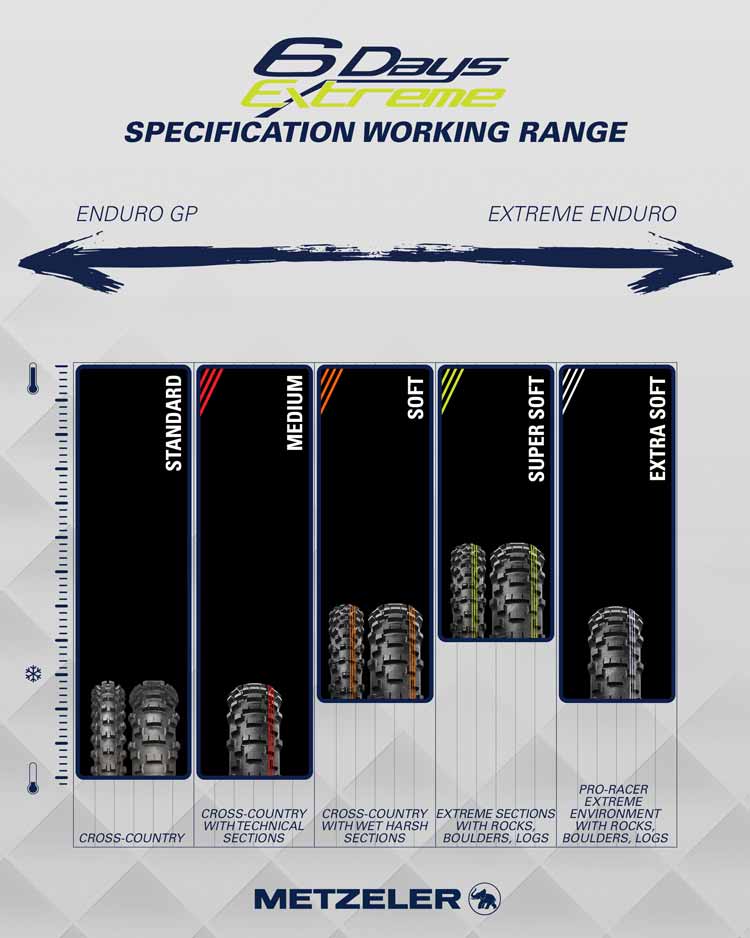 MCE 6 Days Extreme , Metzelers Reifenfamilie für Enduro-Wettkämpfe, wird mit der Einführung der neuen Extra Soft-Hinterradspezifikation erweitert, die speziell für extreme Enduro – Rennen entwickelt wurde.