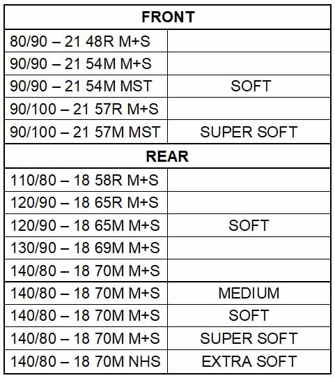 Die Palette der MCE 6 Days Extreme -Reifen umfasst eine Vielzahl von Spezifikationen, die für verschiedene Enduro-Anwendungen entwickelt wurden und es den Fahrern ermöglichen, die am besten geeigneten Lösungen für ihre Bedürfnisse zu finden. Den Vorderreifen gibt es in verschiedenen Größen und in drei Ausführungen: Standard, Soft und Supersoft . Der Hinterreifen ist in neun Größen erhältlich, die auf fünf verschiedene Versionen aufgeteilt sind: Standard, Medium, Soft, Super Soft und das neue Extra Soft .