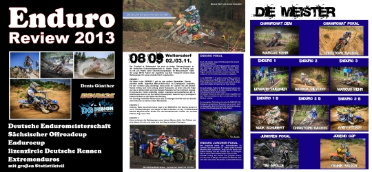 Der Enduro Rückblick ist zur Saison 2013 erstmals erhältlich. Geplant als Sammelband wird es ab sofort in jeden Jahr von DG Design einen Saisonrückblick der Deutschen Enduroscene geben.