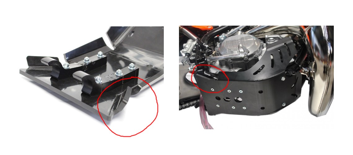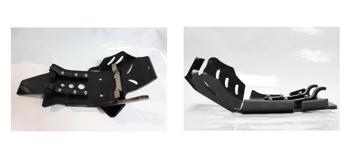 Auf Grund des neuen Design schützt er jetzt den Kupplungsdeckel und die Wasserpumpe noch besser. Neu dazugekommen ist ein Schutz des Rahmens im Bereich der Fußrasten. Die Unterseite bietet einen Integrierten Umlenkungsschutz für alle Modelle mit Umlenkung.