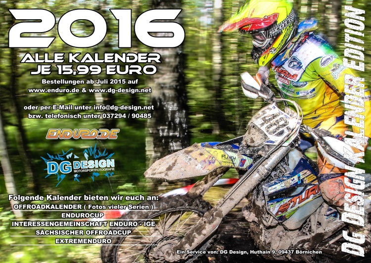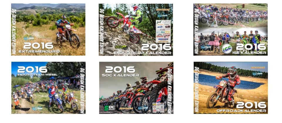 DG Design bietet für 2016 insgesamt 6 Kalender. ( Offroadkalender, IGE Kalender, SOC Kalender, Endurocup, Enduro Team Wiesel und Extremendurokalender )