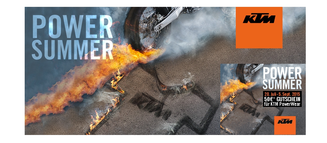 KTM füllt das Sommerloch! Beim KTM PowerSummer gibt es 50,- EURO Gutscheine für KTM PowerWear.