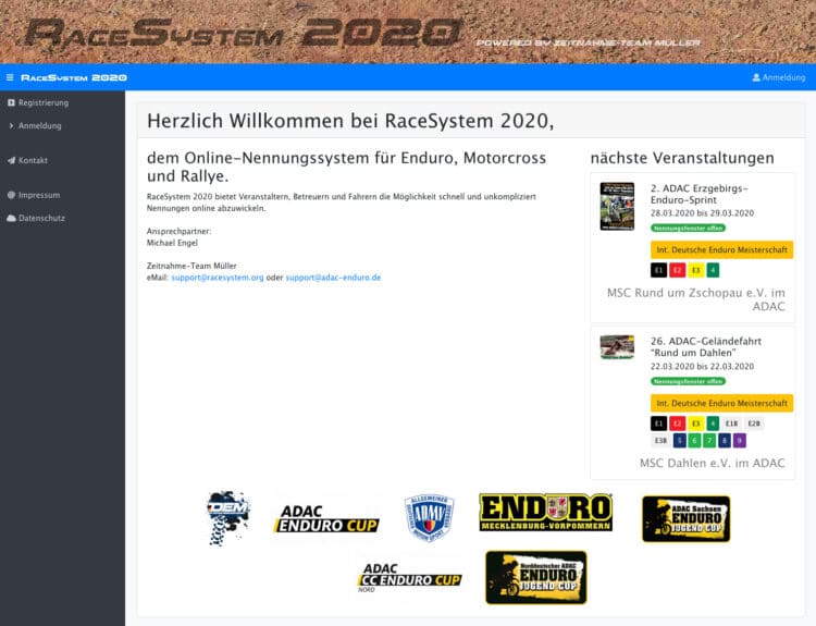 Im neuen System erhält der Veranstalter nun die Möglichkeit, Prädikate verschiedener Verbandsserien (wie z.B. die Int. Deutsche Enduro Meisterschaft und den ADAC-Enduro-Cup) mit einem Mal anzumelden. Auch die Dauerstartnummern sind dort fest integriert und grafisch entsprechend so dargestellt, dass bei Nennungen sofort sichtbar wird, welche Nummern noch offen und welche zu vergeben sind. Ebenfalls neu ist, dass die Startaufstellung automatisch generiert wird und auf Knopfdruck als PDF zur Verfügung steht. Zudem hat der Ausrichter im öffentlich zugänglichen Bereich von „Race-System“ die Möglichkeit, seine Veranstaltung durch den Upload des Veranstaltungsplakates oder zur Informations-Verteilung über das neu eingeführte virtuelle „Schwarze Brett“ besser zu publizieren und darstellen zu können.