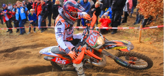 Dennis Schröter zeigte in Woltersdorf wieder einmal eine perfekte Leistung. Mit seinen souveränen Sieg krönte der Husqvarna Fahrer seine Saison auch mit den Titel in der Enduro 1 Kategorie. Dahinter spitzte sich aber der Zweikampf zwischen Edward Hübner und Andreas Beier um den Vizetitel zu. Andi kollidierte bereits in der ersten Runde mit einem Streckenbegrenzungspfahl und brach sich dabei den kleinen Finger. Mit Schmerztabletten kämpfte er sich aber dennoch über den Tag und konnte in der letzten Runde sogar noch vor Eddi fahren und sich den Vizetitel sichern.
