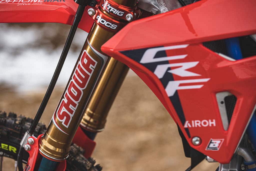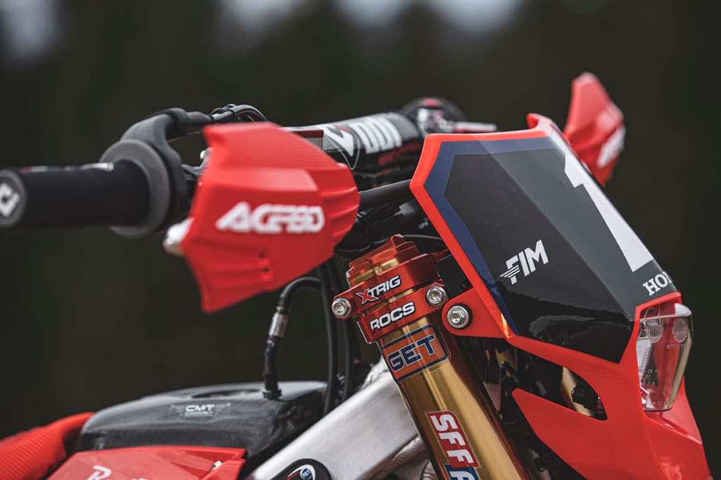 „Ich war wirklich beeindruckt von der Stabilität und der Manövrierfähigkeit des Bikes, als ich das erste Mal darauf gefahren bin. Das Zentrum der Massen ist niedriger und generell ist das Bike deutlich leichter als dass, was ich zuvor gefahren habe. Ich hatte die Möglichkeit, die Palette der Bikes, die das Team anbietet, zu testen, aber mein Hauptfokus lag darauf, auf dem E1-Klassen-Bike, der CRF250RX, zu fahren.“