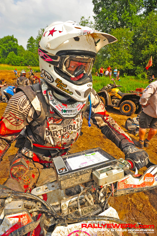 dem Lenker montierten F2R-Roadbookhalter mit Tripmaster zum Rallyebike