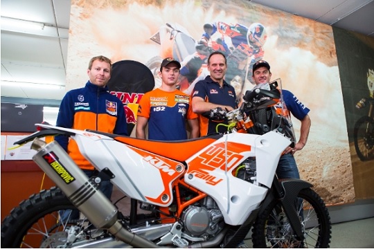 Das ist ein großer Traum und eine Chance, die ich unbedingt nützen will“, sagt Matthias Walkner. Der Motocross-Weltmeister von 2012 (MX3) wird am 4. Jänner 2015 im KTM-Werksteam bei der ‚Rallye Dakar‘ an den Start gehen. Der 28-jährige KINI KTM-Pilot aus Kuchl in Salzburg ist am Freitag von KTM-Legende Heinz Kinigadner als Teil der KTM-Equipe vorgestellt worden.