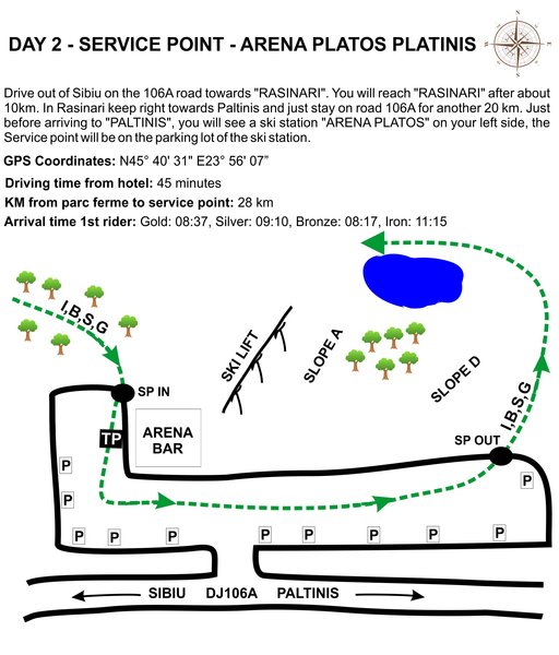 Der Servicepunkt liegt wie im Vorjahr auf dem Parkplatz der Arena Platos und ist in nur 45 Minuten nach 28 Kilometer zu erreichen. Vom Servicepunkt geht es wieder zurück Richtung Sibiu. Das Ziel ist allerdings nicht in der Innenstadt sondern in Tocile vor den Toren der Stadt.