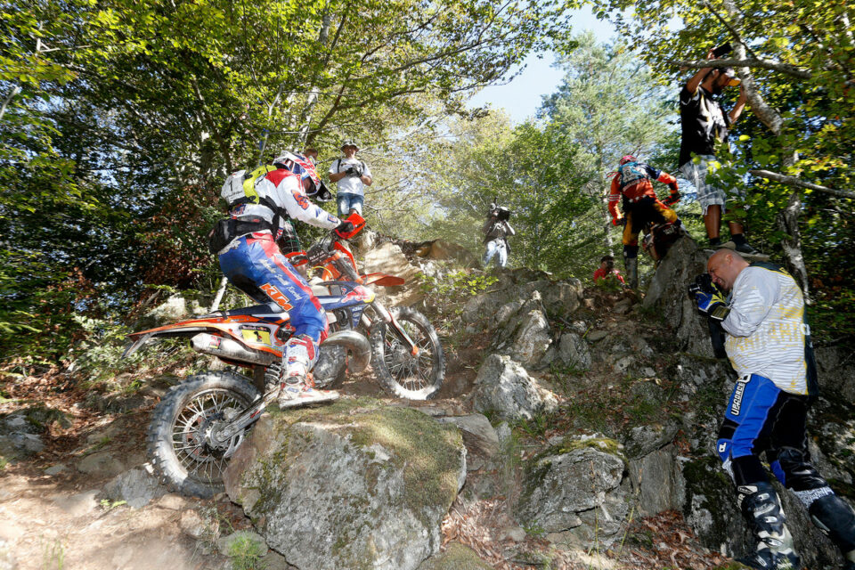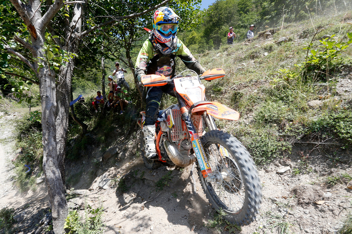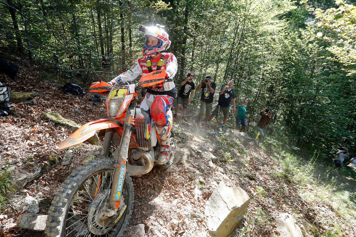 Mit Bolton und Walker schied auch Dan Hemingway, der sich beim gestrigen Prolog eine Stahlplatte in seinem Fuß gebrochen hatte, vorzeitig aus dem Rennen – und hinterlässt damit eine weitere Lücke in der britischen Extreme Enduro Armada. Dazu kommt noch, dass Newcomer Billy Bolt (UK) nach seinem hervorragenden 4ten Platz im Prolog heute einen kapitalen Navigationsfehler machte und sich in eine Sackgasse von biblischem Ausmaß manövrierte. Der talentierte Youngster musste mit einem Rettungsteam geborgen werden und kann den heutigen Tag als Streichresultat abhaken – darf sich aber in den kommenden drei Renntagen keinen Fehler mehr erlauben.