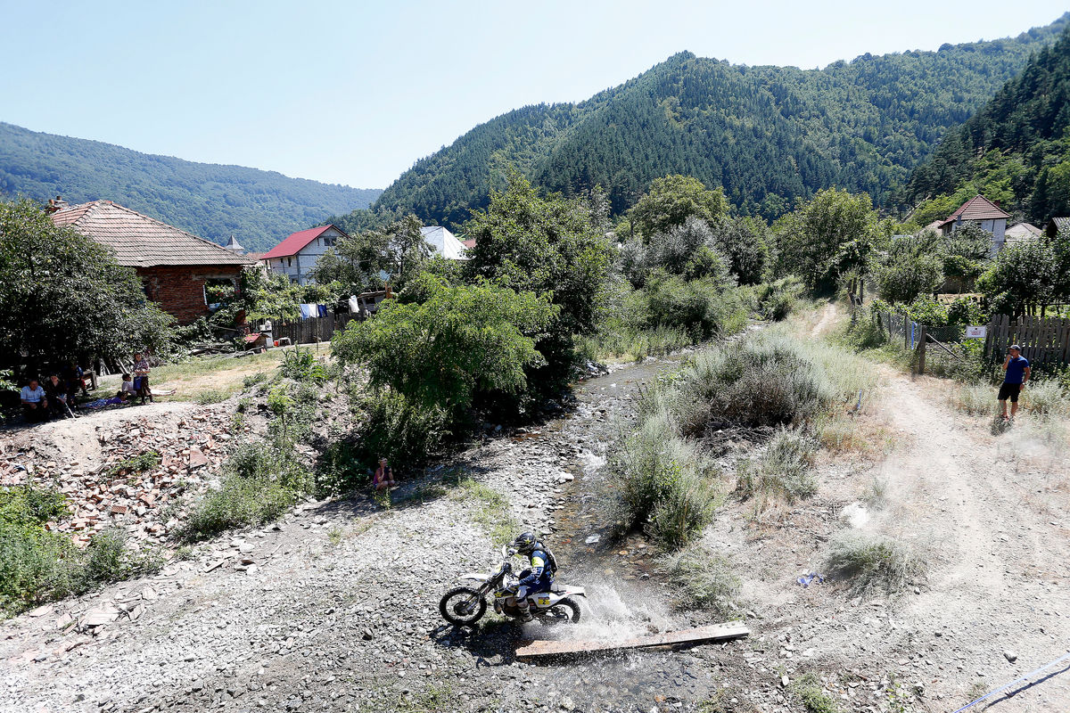 Hermannstadt / Sibiu, Rumänien, 13. Juli 2016 – Wie erwartet präsentierte sich der heutige erste Offroad-Renntag für die meisten Teilnehmer als „Offroad-Straflager“. Martin Freinademetz rief damit allen Fahrern in Erinnerung, dass die Red Bull Romaniacs definitiv “kein Kindergeburtstag” ist. Schon kurz nach dem Start um 6:45 Uhr fanden sich die Teilnehmer der Gold- und Bronze-Klasse in der beinharten Realität des Extreme Enduro Sports wieder und bekamen als „zweites Frühstück“ die volle Härte der Red Bull Romaniacs serviert. In der Gold-Klasse folgte bis zum Checkpoint 1 eine Schinderei auf die Nächste, was dafür sorgte, dass die favorisierten Topfahrer schwer zu kämpfen hatten – und sich neue Gesichter an der Spitze des Feldes etablieren konnten. Wade Young (RSA), Travis Teasdale (RSA) und Manuel Lettenbichler (DE) erreichten zur Überraschung vieler, heute als Erste den Servicepunkt und berichteten von harten Kämpfen und hohem Tempo bei staubigen Bedingungen. Alfredo Gomez (ESP) und Graham Jarvis (UK) trafen einige Minuten später am Servicepunkt ein, doch von Jonny Walker (UK) fehlte immer noch jede Spur.