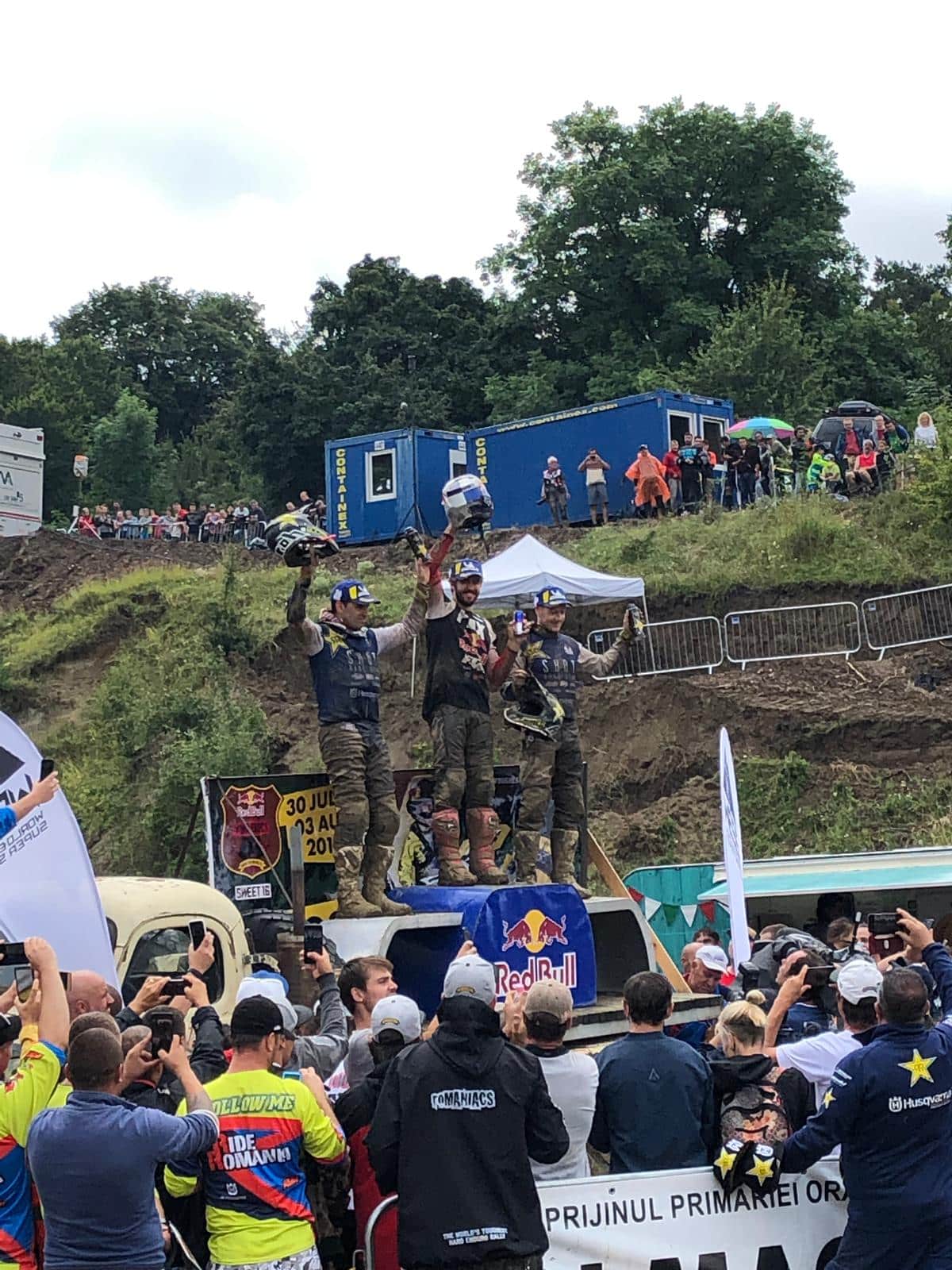 Der Offroad-Start wurde von Manuel Lettenbichler um 07:00 Uhr eröffnet und es regnete bereits in Strömen. Die Fahrer mussten den ganzen Tag über gut 10.000 Meter klettern und insgesamt eine Strecke von 124 km im Umfeld von Sibiu bewältigen. Hier die klangvollen Namen der Signature Sections: Ass Slide, Snooze, Momentum, Too Much Zicky Zacky, Extreme Miorita, Flying Ford, Hug the Tree, Ventilator und The Rock. Es war ein klassischer Romaniacs-Mix aus Wald- und Alpin-Strecken in den tiefen Tälern um Sibiu und Paltinis.