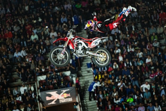 München, 15. März 2014 – Beim Saisonauftakt der Red Bull X-Fighters World Tour in Mexico City wurde die Stimmung auf der mit 38.000 Fans ausverkauften Monumental Plaza de Toros einzig und allein vom Wagemut der weltbesten FMX-Fahrer übertroffen. Ganz oben auf dem Podest standen zwei Athleten aus Down Under: der Neuseeländer Levi Sherwood und der Australier Josh Sheehan. Platz drei ging an Dany Torres aus Spanien.