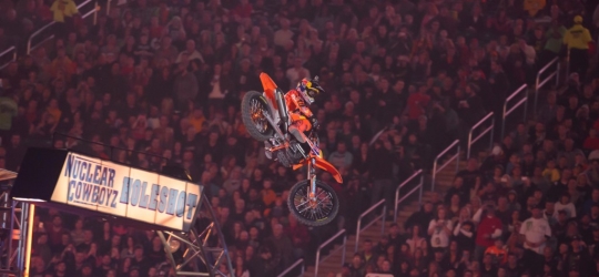 Nur noch theoretische Titelchancen hat Ken Roczen bei der US Supercrossmeisterschaft. In der Autocity Detroit wurde er mit Rundenrückstand nur auf Platz 20 gewertet. Ein Stein verklemmte sich in seiner Bremse und zwang ihn zu einen Zwangsstopp.