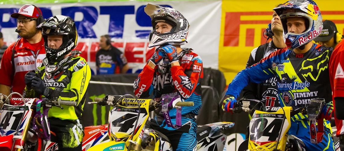 450SX-WM, Arlington:1. Ryan Dungey (KTM), 2. Ken Roczen (RCH Suzuki), 3. Trey Canard (Honda),4. Blake Baggett (Yoshimura Suzuki), 5. Andrew Short (KTM), 6. Jason Anderson (Husqvarna), 7. Eli Tomac (Honda), 8. Josh Grant (Kawasaki), 9. Broc Tickle (RCH Suzuki), 10. Cole Seely (Honda)