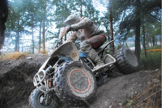 Bei den Quads standen schlussendlich noch 24 Quads und 1 ATV-Kämpfer am Start, wobei die Bedingungen für die Vierradler wirklich denkbar schlecht waren. Nichts desto trotz stürzten sich alle ins Rennen, trotzten Nässe, Schlamm und Kälte und lieferten eine beeindruckende Show für die für das Wetter wirklich zahlreichen Besucher, die ebenfalls aus einem besonderen Holz geschnitzt schienen. Am Ende legte Kurt Neuner mit gewaltiger Fahrt und 28 Runden beachtlich vor. Mit bereits 2 Runden Rückstand dahinter Mike Schöpf und Adolf Butej ebenfalls am Podium. Die Top5 komplettieren Markus Jäger und Michael Kropik. Eine trotz der miserablen äußeren Umstände wirklich gelungene Premiere für die Quadracer und der Beweis, dass auch mit vier Rädern das schwere Gelände in Roppen racemäßig zu bewältigen ist. Das schaut nach einer Fortsetzung aus…..