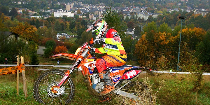 Davide von Zitzewitz (E2) und Luca Fischeder (E3) haben ihre Meister-Titel bereits beim vorletzten Saisonlauf in Rehna perfekt gemacht. Letztgenannter hat zudem allerbeste Chancen, seinen Championatstitel in Zschopau verteidigen zu können. Einzig Teamkollege Jeremy Sydow könnte Luca Fischeder rein rechnerisch die prestigeträchtige Meisterschaft noch streitig machen. Der wiederum liegt in der E1 weit in Front und damit unmittelbar vor seinem ersten DEM-Titelgewinn. Zumal sich sein einzig verbliebener Konkurrent Edward Hübner in Rehna das linke Schlüsselbein brach. Weitaus spannender geht es noch in der Junioren-Klasse zur Sache. Hier hat zwar der Tscheche Robert Friedrich die besten Karten in der Hand, doch für Leon Thoms und auch dem Zschopauer Lokalmatador Pascal Sadecki ist der „Meister-Zug“ noch nicht endgültig abgefahren. In der Mannschaftsmeisterschaft hat aktuell das erste Team des ADAC Sachsen die Nase vorn.