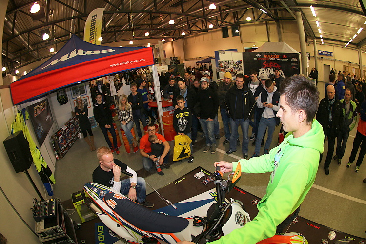 Auch an unseren Enduro.de Enduro Base 3 Stand liefern euch wieder ein volles Programm zum Messeabschluss. Marcel Teucher und Christian Fischer heizen euch mit 3 Shows noch einmal auf den Freigelände ein.