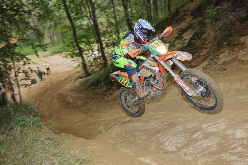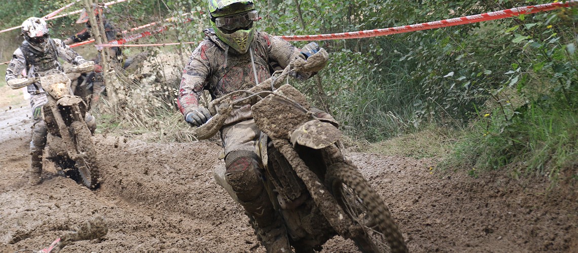 Die Energy benötigten auch die Fahrer des ersten Laufes. Wie immer hatten sie die schlechteren Bedingungen, obwohl es optisch zunächst gar nicht danach aussah. Der Regen hatte die Strecke doch so aufgeweicht das es einige Schlammlöcher auf der eigentlich geschobenen Piste gab. Bereits nach Runde 1 waren die Fahrer vor Schlamm nicht mehr auseinanderzuhalten. Da Langensteinbach in der Mitte von Sachsen liegt waren wieder zahlenmäßig mehr Fahrer am Start. Bei den Einsteigern stellten sich immerhin 92 Fahrer den 3 Stunden Enduro. Mit Jonny Bergert gab es gleich in seinem ersten SOC Rennen einen neuen Sieger. Der Tabellenführer Michael Noack schied bereits nach 3 Runden vorzeitig aus.