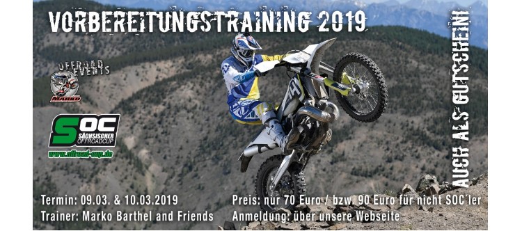Wie in jeder Saison richtet der Sächsische Offroadcup vor der Saison ein Saisoneröffnungstraining aus. Während der 09.03. bereits ausgebucht ist, sind für den Sonntag 10.03. noch einige freie Plätze verfügbar. Das Training wird von Offroadtrainer Marko Barthel und seinem EnduroPro Team durchgeführt.