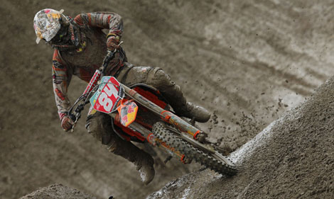 Am Sonntag erwartete uns in Schweden ein Wetter, wie man es keinem MX Piloten wünscht. Es schüttete nur so, dass die Rennstrecke nur aus Schlamm und Pfützen bestand. Welches sich nicht gerade als Leicht zu fahren herausstellte.
