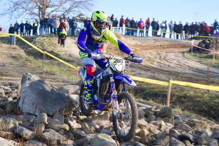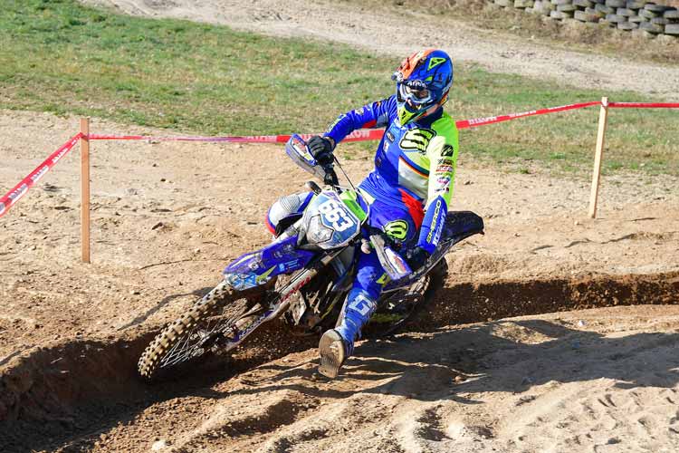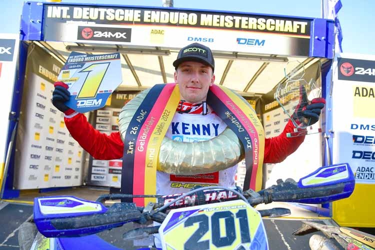 Beim Saisonauftakt vor drei Wochen in Tucheim in Sachsen-Anhalt musste sich Luca Fischeder noch knapp dem Gaststarter Filip Bengtsson geschlagen geben. Der Ex-Motocross-Profi aus Schweden war zwar auch bei Lucas Heimrennen in Dahlen (er gehört seit vorigem Jahr dem gastgebenden Verein MSC Daheln an) wieder am Start, doch auf deutlich Enduro-typischerem Geläuf zeigte der Sachse mit sechs von acht möglichen Sonderprüfungsbestzeiten dem Skandinavier sowie dem Drittplatzierten, dem Europameister 2021 Krystof Kouble aus Tschechien, wo der Hammer hängt. „Zu gewinnen, war wieder der Plan und der hat funktioniert“, freute sich Luca Fischeder anschließend und erklärte dann etwas ausführlicher: „Es war ein super Tag. Ich habe keinen großen Fehler gemacht und konnte immer meinen Stil durchfahren, wie ich es wollte. Ich konnte auch die Spuren fahren, wie ich sie mit Marcus beim Prüfung laufen angeschaut habe. Es lief wirklich perfekt.