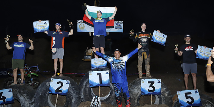 Mitten in dieser Härteprüfung setzte sich Teodor Kabakchiev (SE 300 Factory Xtrem) durch – auf einem Serienmotorrad des indonesischen Sherco-Importeurs! Und das gegen niemand Geringeren als Hard Enduro Weltmeister Manuel Lettenbichler und Enduro-Legende Graham Jarvis.