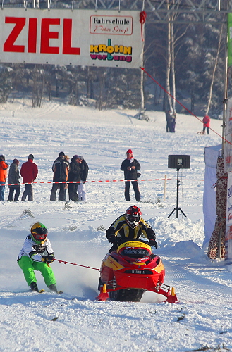 Das extreme Winterwetter hat auch seine Guten Seiten. Im letzten Jahr noch ausgefallen, gab es heute wieder ein Ski-kjöring in Geyer. Zum mittlerweile neunten mal fand am Freizeitbad Greifensteine, bei um die -10 Grad das einzigste Ski-kjöring statt wo auch noch Motorräder zugelassen sind.