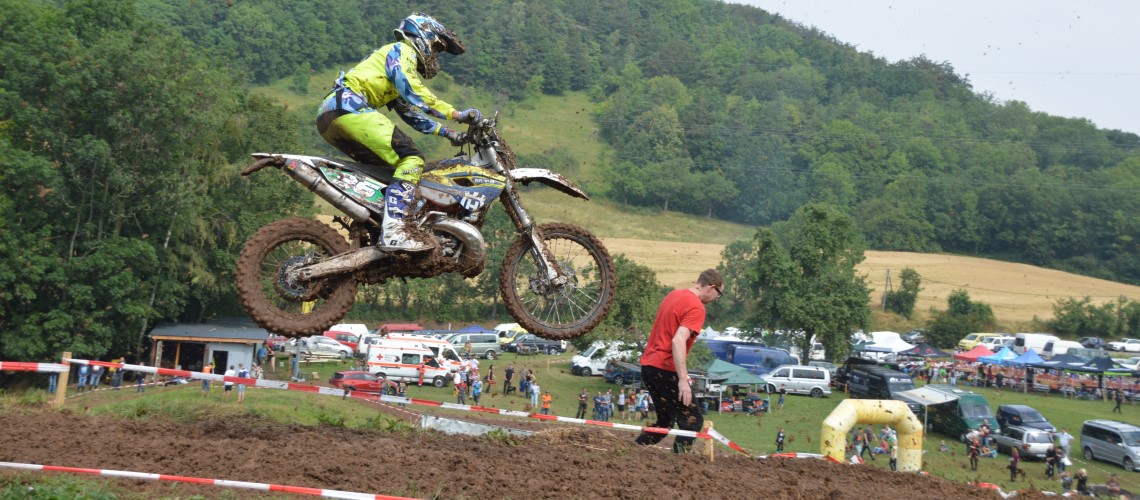 Durch die Regenfälle starteten diesmal zunächst die Radler auf die landschaftlich schöne Strecke. Diese Änderung ging auf, denn das Feld entzerrte sich somit schon ein wenig, wenn wie üblich die Enduropiloten als erstes gestartet wären, hätte es auf dem rutschigen Boden sicherlich den ein oder anderen Stau gegeben.