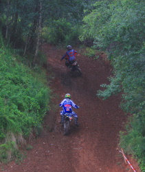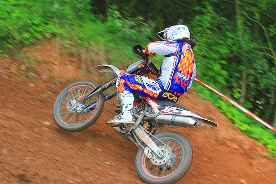 Sportlich passierte heute aber einiges. Im letzten Lauf im nassen dominierte Dennis Schröter genauso wie in allen anderen Läufen vorher. Man sieht Dennis an das er aus dem Motocross kommt und dadurch den anderen deutschen Endurofahrern überlegen ist.