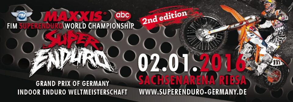 Nur noch vier Monate bis zum SuperEnduro in Riesa – nur noch 16 Wochen, bis unter dem Hallendach der Sachsen-Arena wieder die Motoren dröhnen: Enduro wird hier in seiner kompaktesten Form geboten, mit spektakulären Hindernissen und dem Kampf Mann gegen Mann. Übersichtlich, auf einem gut einsehbaren Kurs präsentiert, fachlich kommentiert von den Sprechern aus der Szene und mit dem Ziel die Weltmeisterschaft zu gewinnen.