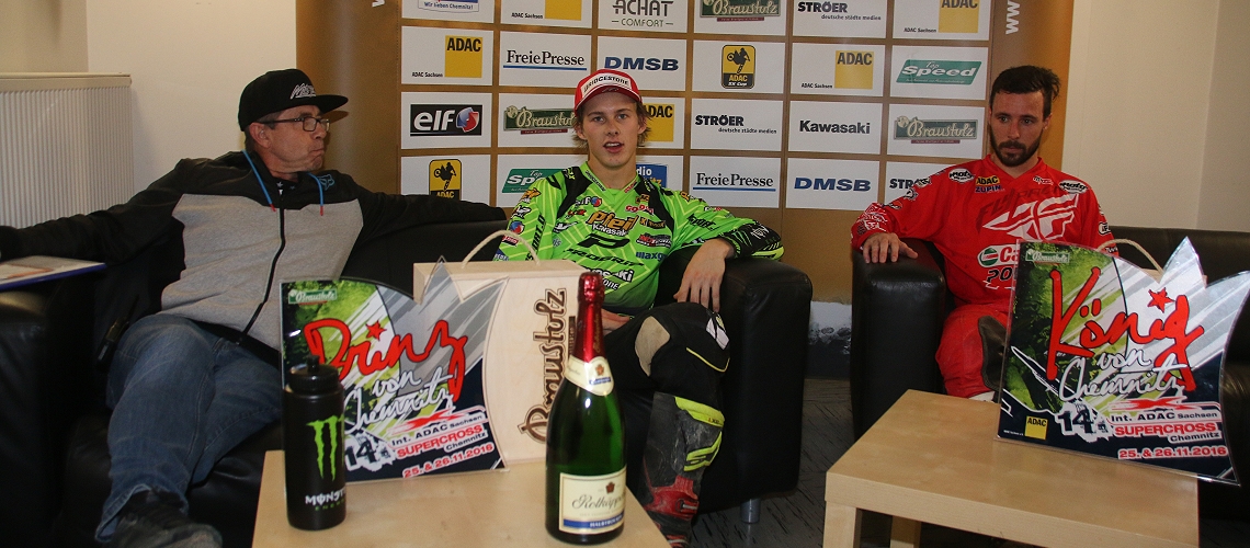 Stephan Büttner war auch am zweiten Tag etwas über motiviert, im ersten Heat stürzte der Thüringer. Im zweiten Durchgang verteidigte er mit Platz 2 zumindest seine Tabellenführung. Neuer Prinz von Chemnitz wurde der Niederländer Luca Nijenhuis: „Für meine erste Supercross-Saison nicht schlecht, oder? Leider hat es für den Tagessieg heute wieder nicht ganz gereicht, aber