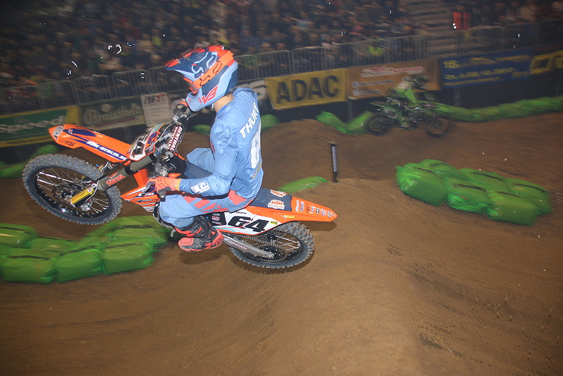 Lokalmatador Dominique Thury hatte es am Samstag wesentlich schwieriger. Erst der Start im Hoffnungslauf ermöglichte ihn die Teilnahme am Finale. Vom letzten Startplatz kommend schaffte er dort eine beherzte Aufholjagd und fuhr sich noch bis auf Platz 5 nach vorn: „Heute lief es wieder nicht ganz wunschgemäß, aber im Last-Chance-Heat habe ich meinen Rhythmus endlich wieder gefunden. Wenn es nach mir ginge, könnte es jetzt losgehen, denn zum Schluss habe ich mich mit der Strecke angefreundet. Das soll aber keine Ausrede sein, denn die Strecke ist für alle gleich. Dennoch ist es immer so, dass dem einen diese Strecke besser liegt, dem anderen jene. Der Start im Finale war von meiner ungünstigen Ausgangsposition weit außen ganz gut. Leider bin ich dann
