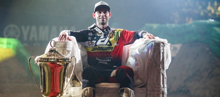 Der Finaltag des 37. ADAC Supercross Dortmund war geprägt von Superlativen. Als alter und neuer „König von Dortmund“ stand am Ende Tyler Bowers (Monster Energy Kawasaki Elf Team Pfeil) im Rampenlicht. Der US-Amerikaner ist der erste Pilot in der Geschichte von Deutschlands ältester Supercross-Veranstaltung, der dreimal in Folge den Titel errang. „Natürlich wollte ich den dritten Titel in Folge“, sagte Bowers. „Und natürlich habe ich daran geglaubt, dass ich das schaffen kann. Aber jetzt, wo ich zum dritten Mal in Folge den Thron bestiegen habe, fehlen mir einfach die Worte. Ich denke, es wird ein paar Tage dauern, bis ich das realisiert habe.“