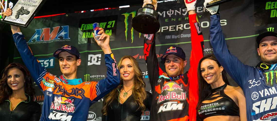 Die achte Auflage der AMA Monster Energy Supercross Serie in Atlanta ging erneut an Ryan Dungey. Nach dem aufbäumen von Ken Roczen in der Vorwoche dachten viele an einer Wachablösung von Dungey. In der letzten Nacht sah es allerdings schon wieder so aus wie in vielen Rennen zuvor. Dungey siegte auf seiner RedBull Factory KTM und lies den Gegnern keine Chance. Sein Vorsprung hatte sich bis ins Ziel auf über 4 Sekunden vor seinen KTM Teamkollegen Marvin Musquin vergrößert.