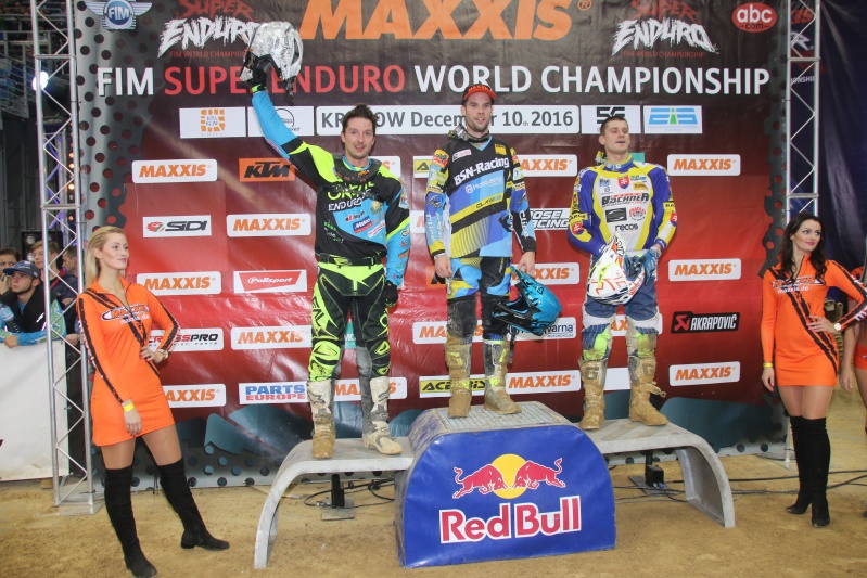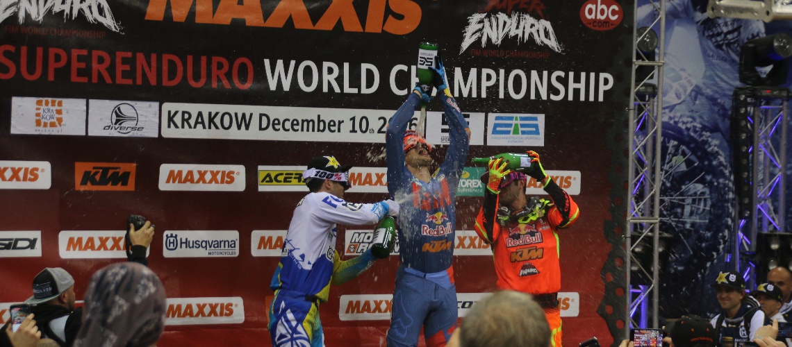 Die Meldung vom Karriereende von Taddy Blazusiak schlug ein wie ein Bombe. Sofort stiegen damit ebenfalls die Vorverkaufszahlen für den ersten Lauf der MAXXIS FIM Superenduro WM 2016 /2017. Vor ausverkauften Haus zeigte Taddy eine Leistung der Extraklasse. Seine Polnischen Fans pushten ihn förmlich zum Tagessieg.